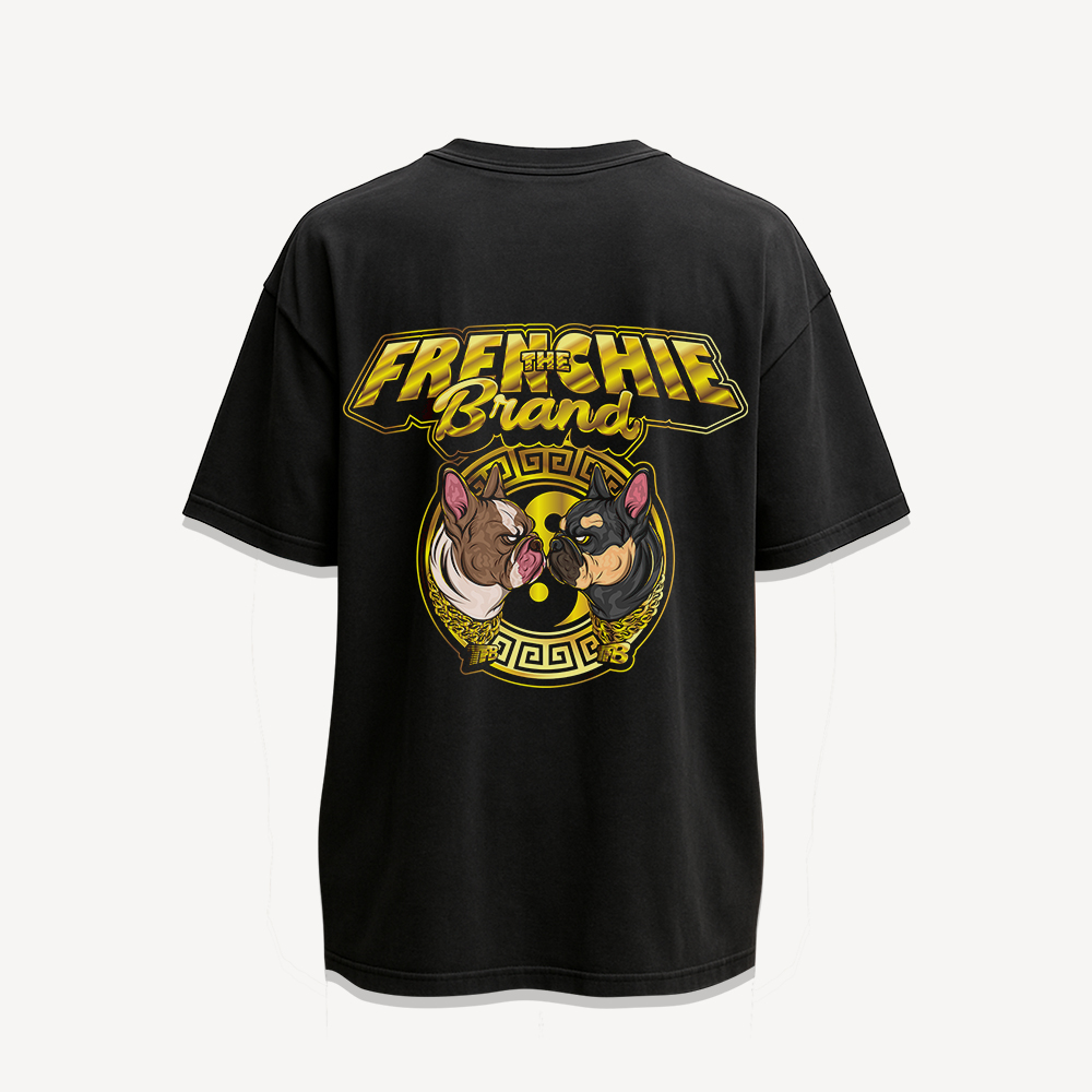 The TFB Dual Balance Tee is a bold fusion of streetwear confidence and refined design. Crafted from premium black cotton, it features a striking circular graphic behind the illustrated dogs, symbolizing unity, strength, and contrast. The rich gold and deep red tones create a powerful visual presence that stands out without overwhelming the look.