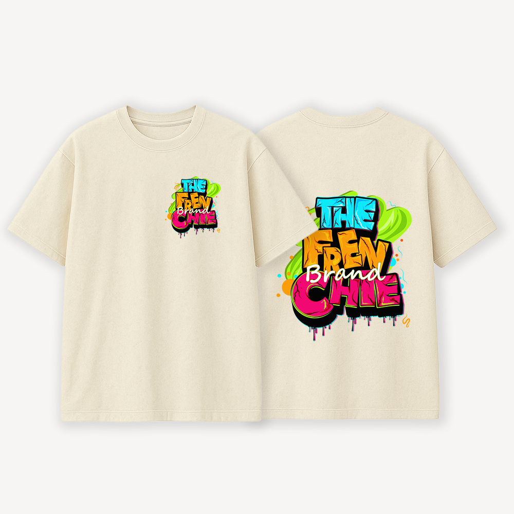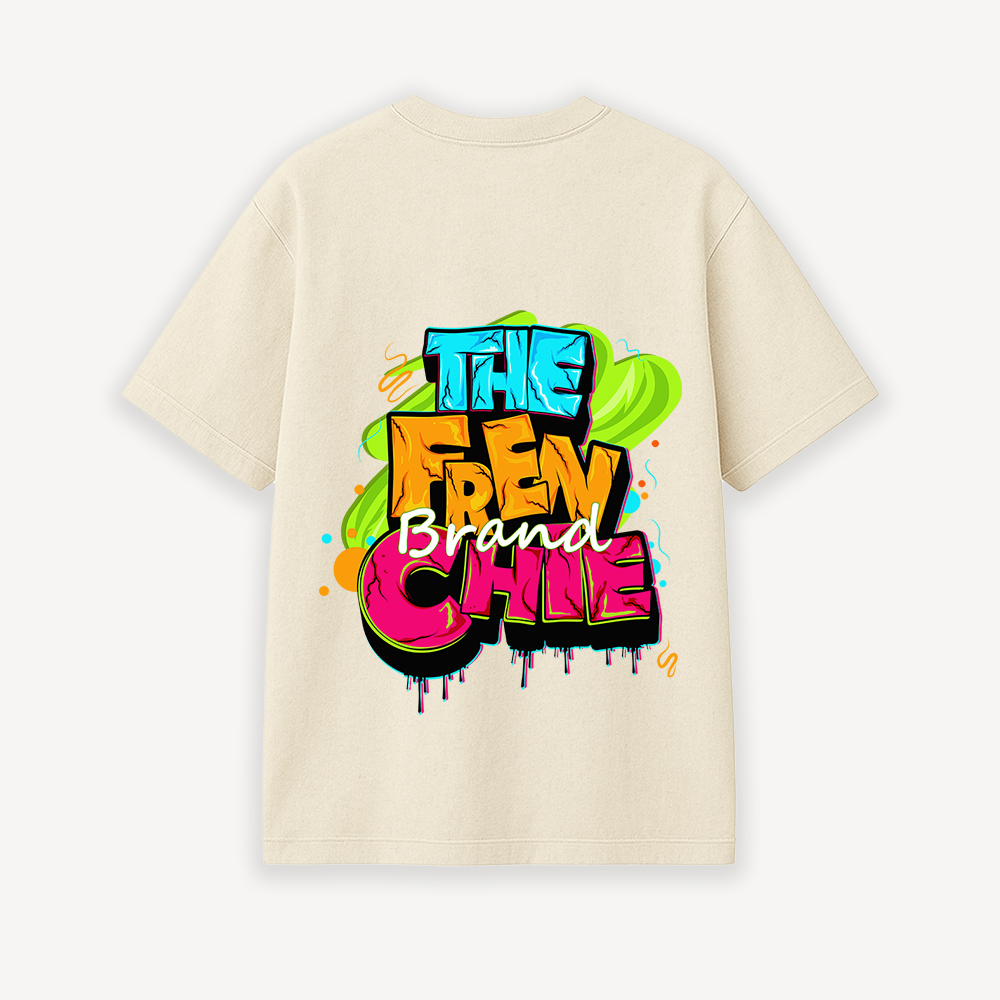 The TFB Street Graffiti Tee captures the raw energy of urban culture through bold typography and vibrant splash graphics. Designed with a layered, graffiti-inspired text layout, this piece reflects creativity, movement, and fearless self-expression. The high-contrast colors pop against the Off-White base, giving the design a loud yet balanced streetwear presence.